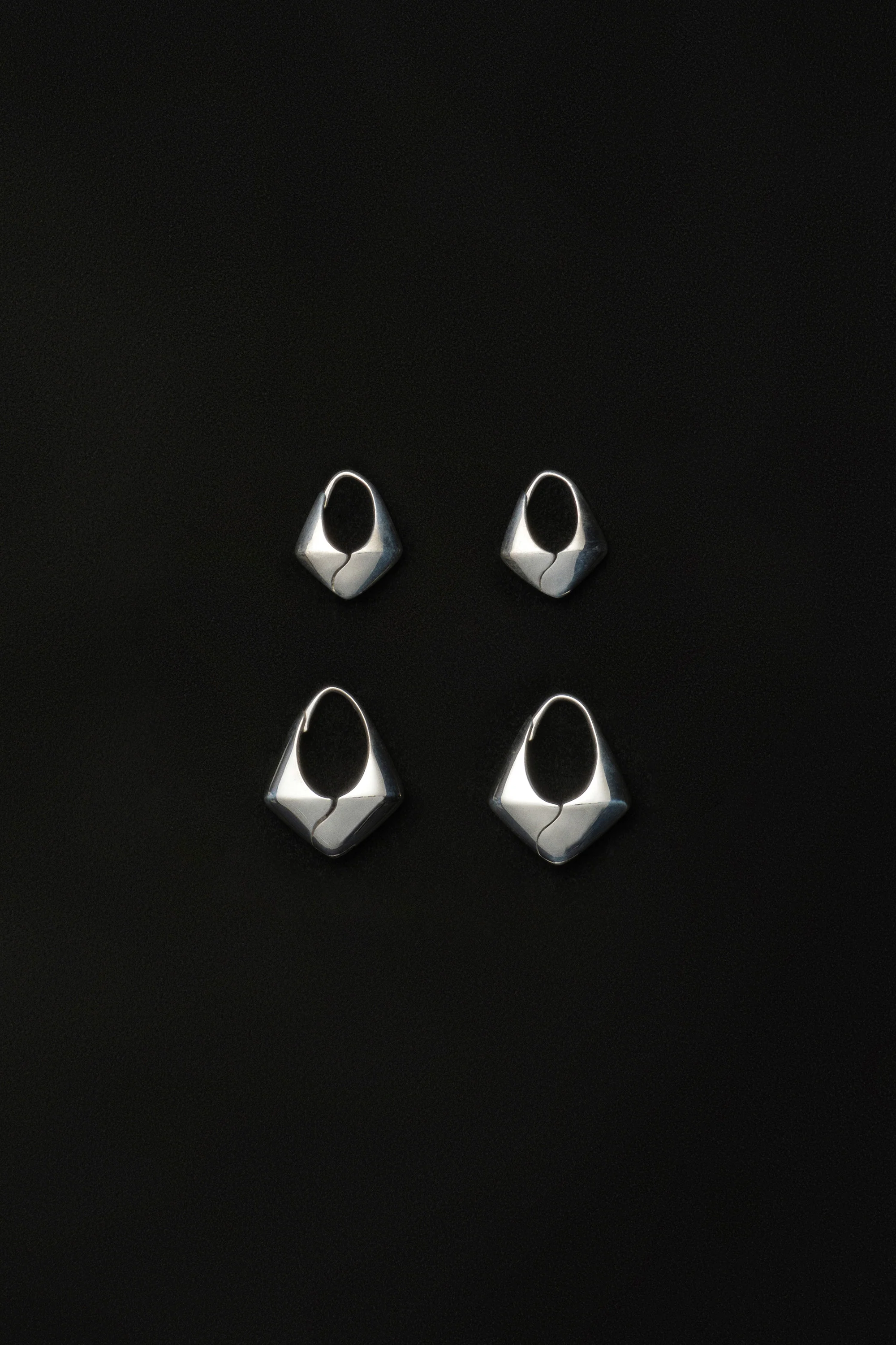 A lightweight hoop with a sinuous point featuring subtle hinge closure. Available in two sizes.