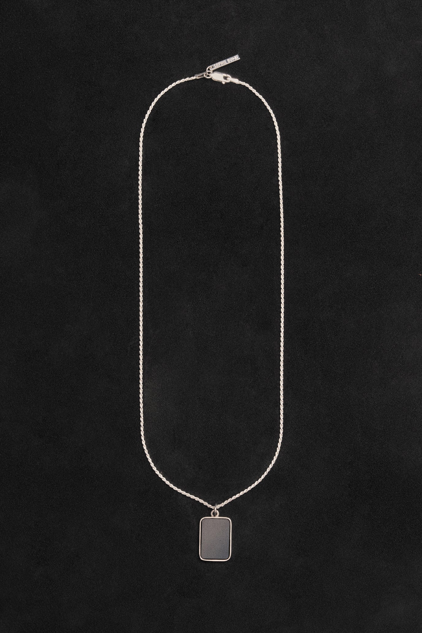 A simple and versatile rectangle pendant featuring onyx.